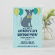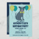 Jetez une pawty géniale avec ce beau chiot et ces invitations de fête d'anniversaire personnalisées. Vous trouverez ci-dessous une illustration d'un pit bull puppy portant des lunettes et une cravate arc entourée de ballons avec tous les détails de votre fête.