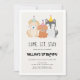 Cette mignonne invitation à l'anniversaire "viens, viens, reste" présente trois chiens chiots avec des casquettes de fête sur un arrière - plan beige clair encadré par une bordure blanche. L'envers comporte un arrière - plan de parties scintillant en faux or. Personnalisez pour vos besoins.Vous pouvez trouver plus de produits correspondants dans mon magasin.