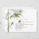 Le feuille en bambou oriental en vert et blanc de jade avec un double bonheur rouge entoure le symbole sur un arrière - plan coloré par solide. Une conception orientée asiatique moderne, simple et chic de mariage qui est contemporaine et chique.