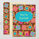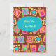 Invitation un amoureux de courtepointe ou de courtepointe avec cette invitation colorée entièrement personnalisable. Customisez pleinement sur le devant et le dos pour ajouter vos propres mots, noms et autres informations. Cet art original de courtepointes fait une invitation vibrante. L'art de la surface composée à partir de l'art original présente des blocs de surface de patchwork préférés, ainsi que des blocs uniques aux couleurs vives et dynamiques d'orange, jaune, rose, turquoise et vert citron sur un arrière - plan chocolat pour une belle palette de couleurs. Un ovale bleu turquoise turquoise est sur le devant de la carte pour dire "Vous êtes invité" ou d'autres mots de votre choix. Montrez votre amour de la courtepointe avec ces créations d'art de courtepointe avec d'autres produits d'art de courtepointe. L'art Quilt est l'art original de Phyllis Dobbs, concepteur de tissus et de courtepointes, et il se trouve dans une collection de tissus de Quilting Treasures. Cet art est disponible sur d'autres produits et dans plusieurs arrière - plans de couleurs. D'autres produits sont disponibles dans Phyllis' BusinesswithFlair store. Correspondance avec la coordination des timbres, enveloppes, autocollants et étiquettes d'adresse de retour.