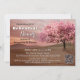 A romantic Rehearsal Dinner invitation featuring a painting of a chocolate fantasy landscape with a blossoming cherry tree. Beautiful for an orchard or Japanese style celebration.
