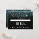 RSVP Moderne Abstrait - Un grand ruban de paillettes turquoise orne la page, avec la mention "faites-nous savoir" en calligraphie manuscrite - les initiales des mariés en haut - le reste du texte est simple et clair - sur fond noir. Papeterie de mariage élégante.