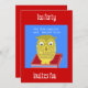 Invitation à la fête du thé pour les amateurs de réservations avec un choux d'or sur un livre rouge.Invitation modèle d'Alma Wad. Customisez-le avec les détails de votre propre fête .