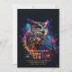 Chouette univers coloré halloween, beau dessin branche sauvage, illustration spatiale art oiseau, peinture animale chouette colorée,