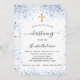 Un baptême moderne et élégant, célébrant un bébé garçon. Arrière - plan blanc décoré avec des étincelles de parties scintillant bleue et une croix d'or. Personnalisez et ajoutez un nom et des détails du parti. Lettres de couleur noire.
