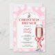 Invitation Christmas Brunch Party Red Bow Wine Pink Gingham
