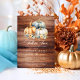 Elégante aquarelle TOMBE EN AMOUR Carte d'invitation de la douche nuptiale. Bois rustique avec turquoise bleu profond, orange doré, couleurs blanches avec trois citrouilles et arrangement de fleurs. Parfait pour cette saison automnale rustique. Impressionnez vos invités avec des articles de papeterie correspondants...modèle modifiable. Numérique, téléchargeable. Consultez la collection "FALL IN LOVE Blue Gold orange citrouilles collection pour d'autres articles.
