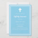 Un arrière - plan bleu ciel, décoré d'un cadre blanc, et d'une croix blanche Personnalisez et ajoutez le nom et les détails. Texte blanc.