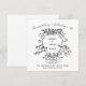 Ces invitations de mariage élégantes, en noir et blanc, présentent une illustration dessinée à la main d'une crête mariage avec des chérubins et des fleurs. Le temps du mariage passe sur un ruban élégant. Il y a un script manuscrit tendance pour un look vintage fantaisiste et romantique.