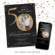 Carton d'invitation au cinquantième anniversaire de mariage en calligraphie noir et or. Invitation élégamment conçue pour célébrer cet anniversaire de mariage spécial, avec une photo personnalisée du couple et une calligraphie script avec des éléments de flourish vintage. Une façon vraiment mémorable et spéciale de célébrer ce jalon !