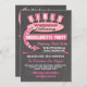 Parcours de escapade de fin de semaine Invitations Super mignonne et cool ces invitations comportent un signe rétro pour accueillir vos amis à une Bachelorette Party pour le week-end et le dos contient tous les détails des événements amusants. Arrière - plan de tableau de bord et palais de couleur rose et roux. Illustration tirée à la main par McBooboo