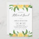 Invités Invitations à votre événement avec cette invitation personnalisable de brunch à la retraite. Il présente des illustrations aquarelles de citrons, de clémentines, de fleurs florales et de verdure. Cette invitation au brunch au citron sera parfaite pour les fêtes de retraite d'été. Personnalisez en ajoutant les détails de votre événement.