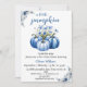 un petit citrouille est sur son chemin bébé boy douche invitation, un citrouille floral bleu, pour l'automne d'Halloween, le thème parfait pour chaque soirée de baby shower d'automne bohème.