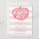 Invitation citrouille Baby shower fille. Invitation Baby shower fille. Les rayures rose et blanche. Pour plus de personnalisation, cliquez sur le bouton "Customiser" et utilisez notre outil de conception pour modifier ce modèle.