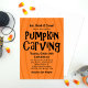 Des invitations élégantes à manger, boire et carve donnent le ton pour une fête de sculpture citrouille amusante ! Invitation comporte un arrière - plan citrouille orange avec titre sculpté noir et texte personnalisé. L'arrière de la carte est muni d'un motif de citrouilles de lanternes jack o'.