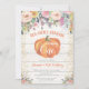 Invitation citrouille d'anniversaire. Invitation à la fête d'anniversaire de l'automne pour garçon ou fille. Aquarelle Fleur Florale et Parties scintillant d'or Confetti Arrière - plan de bois rustique. Rose et orange. 1er Premier Invitation Anniversaire. 1er 2e 3e 4e 6e 7e 8e 9e 10e, Tout âge. Pour plus de personnalisation, cliquez sur le bouton "Customiser" et utilisez notre outil de conception pour modifier ce modèle.