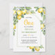 Citrus citron 1er anniversaire invitation, dessinée dans des couleurs pastel douces dans un style aquarelle.