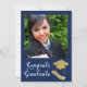 Ces uniques invitations à l'obtention de diplômes 2025 en bleu foncé et blanc ont le texte et le modèle photo carré, et sont décorées avec les illustrations de casquette et de diplôme de l'diplômé dans les couleurs jaune doré. Cette conception est possible d'acheter en tant qu'invitation de graduation téléchargeable et / ou en tant que version imprimée. Veuillez télécharger la photo du diplômé et personnaliser le texte avant de commander.