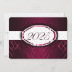 Invitation de la fête de graduation bordeaux et blancs avec des rayures bordeaux claires et foncées et un ruban blanc qui traverse pour montrer l'année de graduation. Le dos de la carte est bordeaux avec une police blanche pour que les gens puissent remplir les invitations à la fête de remise de diplômes.