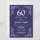 Navy White Elegant Birthday Womens Classy 60e invitation SIMPLEMENT CHANGER LE TEXTE POUR CONVENIR À VOTRE FÊTE. Impression arrière incluse.
