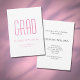 Graduation Class of 2024 Grad party invitation avec un design minimaliste. Avec la typographie rose et noire personnalisable lettrage, vous pouvez ajouter votre propre texte. Un simple invitation pour planifier cette célébration spéciale.