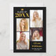 Classe de 2025 médaille d'or et de noir à l'invitation de la fête de la casquette de graduation. Il présente nos photos, votre texte en or sur un arrière - plan noir et une casquette de graduation. L'arrière comprend les détails de la fête dans un cadre avec une bordure motif faite de plafonds de graduation.