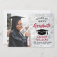 Annoncez un diplôme d'études secondaires ou collégiales et la famille et les amis invitations à célébrer avec des invitations personnalisées de la photo faux marbre fête. L'image et le libellé sont simples à personnaliser et les couleurs sont faciles à changer avec l'outil de design Zazzle. Ce modèle est configuré comme une carte de faire-part et une invitation à la fête qui peut être customisée avec tous les détails de votre choix, tels que le nom des parents, les distinctions spéciales, le titre du diplôme, la citation inspirante préférée, les plans futurs du diplômé ou nouvelle adresse. Le design rouge, noir et blanc présente un arrière - plan en faux marbre, un casquette en carton de mortier, une calligraphie moderne élégante, une typographie vintage classique et une photo préférée, telle qu'une photo de haut rang ou une image de la cérémonie de début. Cette carte de remise de diplômes est une façon élégante d'annoncer une fête spéciale. Félicitations au diplômé !