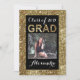 Ajoutez une seule photo numérique à ce joli faire-part de graduation à l'aspect parties scintillant or. Un excellent moyen d'express du côté féminin et féminin de la diplômée en or jaune métallique et noir. Texte de script avec son nom sur le devant.