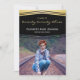 Cette invitation de carte photo de remise de diplômes 5x7 présente un design Chevron art déco noir accentué d'or. Un cadre photo et un texte personnalisés vous permettent d'ajouter une photo du diplômé et son nom sur le devant. Un autre cadre photo à l'arrière permet une photo de deuxième cycle et les détails de votre fête.