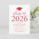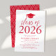 Invités Invitations pour célébrer la grade avec notre classe moderne d'invitations de la fête de remise des diplômes 2025. Les invitations ont un bouchon de graduation en haut avec "Class of 2025" en lettres modernes rouges. Personnalisez les invitations en ajoutant le nom du diplômé, l'école et les détails de la fête de remise des diplômes. Les invitations branchés de la fête de graduation se retournent pour montrer un motif de treillis rouge et blanc.