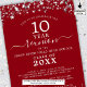 Invitation à la réunion de classe moderne et élégante pour toute année de réunion (montré pour 10 ans) avec étoiles et lumières argentées, typographie manuscrite élégante et un arrière - plan de couleur personnalisé (montré en rouge) vous pouvez changer à votre couleur d'école ou de thème de fête. Tout le texte est modifiable pour créer le vôtre. Cette invitation est également disponible en téléchargement de fichier numérique pour partager numériquement ou en ligne. ASSISTANCE : Pour obtenir de l'aide sur la modification ou la personnalisation de la conception, le changement de couleur, le redimensionnement, le transfert de la conception à un autre produit ou pour coordonner des éléments, contactez le concepteur AVANT LA COMMANDE via l'onglet MESSAGE Conversation Zazzle ci-dessous ou envoyez un courriel à makeitaboutyoustore@gmail.com.