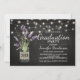 Invitations country chic fête de graduation avec un arrière - plan rustique noir tableau noir, lampes à cordes, un pot de maçon avec fleurs de lavande violette, enveloppé dans burlap avec l'année de classe et un libellé moderne modèle de célébration.