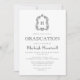 Cette conception classique et élégante d'invitation à la remise des diplômes comprend un monogramme noir initial en police serif ouverte encerclé par une ligne art acanthus crête sur un arrière - plan blanc. Personnalisez le texte avec le nom du diplômé et les détails du parti. Le dos de la carte est blanc. Idéal pour un diplôme d'études secondaires, collégiales ou universitaires.
