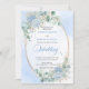 Make your special day unforgettable with this elegant watercolor wedding invitation, thoughtfully designed to shine with Zazzle’s premium print quality. Featuring soft pastel blue hydrangeas, delicate eucalyptus and greenery foliage, and a refined gold glitter oval frame, this invitation blends timeless romance with modern sophistication.