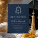 Invitation Classic Navy Blue Monogram Crest Graduation Party