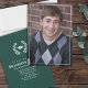 Ce design comprend une photo classique de diplôme de fin d'études supérieures, un classique élégant minimaliste moderne simple, un mortier lauréat feuilles de prix, pour un lycée ou collège, une classe moderne vert foncé, un casquette traditionnel de tableau de mortier de goût, une invitation de graduation de groupe de graduation classe, une simple annonce photo de graduation, avec les couleurs de l'école blanc typographie texte, une faire-part de graduation