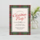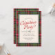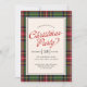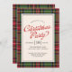 Classic Plaid Retro Script Christmas Party Invitation dispose d'un cadre plaid traditionnel rouge et vert, avec script rétro et type classique.