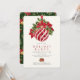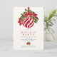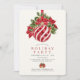 Cette invitation classique de fête de Noël présente un ornement en verre rouge brillant avec un arc/ruban rouge et des saints. L'envers comporte un arrière - plan vert avec poinsettias, hollies et cloches. Personnalisez-le selon vos besoins. Vous pouvez trouver des produits correspondants dans mon magasin.