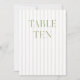 Ce numéro de table élégant présente un arrière - plan rayé beige doux avec une typographie de sauge verte raffinée et des accents de script subtils. Conçu pour les mariages de jardin, les réceptions raffinées et les célébrations de plein air intemporelles. Coordonnées avec la collection de Faire-part de mariage "Iris" — cliquez sur le lien de collection de cette page pour trouver des éléments correspondants tels que des menus, des invitations, des affiches, etc. Remarque : ce modèle n'est pas modifiable. Pour trouver d'autres numéros de table dans cette série, visitez la page de collection complète. ・ Des maquettes pour cette conception ont été créées à l'aide de l'IA Midtravel.