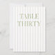 Ce numéro de table élégant présente un arrière - plan rayé beige doux avec une typographie de sauge verte raffinée et des accents de script subtils. Conçu pour les mariages de jardin, les réceptions raffinées et les célébrations de plein air intemporelles. Coordonnées avec la collection de Faire-part de mariage "Iris" — cliquez sur le lien de collection de cette page pour trouver des éléments correspondants tels que des menus, des invitations, des affiches, etc. Remarque : ce modèle n'est pas modifiable. Pour trouver d'autres numéros de table dans cette série, visitez la page de collection complète. ・ Des maquettes pour cette conception ont été créées à l'aide de l'IA Midtravel.
