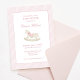 Invitation aimait les autres à doucher votre petite fille avec cette invitation classique en baby shower rose avec une illustration vintage de cheval à bascule, des rayures roses douces et une typographie intemporelle. La palette de couleurs délicates et le design nostalgique le rendent idéal pour un baby shower à thème traditionnel ou conte. Entièrement personnalisable avec les détails de votre événement, c'est un choix charmant pour une réunion confortable en l'honneur de la future maman.