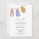 Baby shower Invitation avec une adorable illustration de vêtements vintages classiques pour bébé accrochés à une ligne de vêtements. Personnalisez avec vos informations ou cliquez sur "Cliquez pour customiser plus loin" pour modifier les styles, la taille et les couleurs des polices.