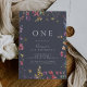 Cette invitation classique à fêter le premier anniversaire bleu sauvage est parfaite pour une fête d'anniversaire rustique. Le design présente des fleurs sauvages jaunes, violettes et blanches avec du feuillage dans un arrière - plan rose et vert aquarelle.
