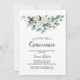 Célébrez une Quinceañera intemporelle et élégante avec cette invitation florale blanche classique. Caractérisée par des roses, des pivoines et des chrysanthèmes ivoire et blancs, accentuées de fleurs de pervenche bleue à l'aquarelle délicate et de feuillage vert luxuriant, cette conception est parfaite pour une célébration d'anniversaire de 15 ans au printemps. Personnalisez avec les détails de l'événement pour créer une invitation belle et sophistiquée pour ce jalon spécial !