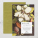 Cette invitation époustouflante est parfaite pour tout événement sudiste luxueux comme les mariages, les dîners de répétition ou les soirées de fêtes. Elle présente une illustration magnifique de magnolia vintage et un papier grasscloth coordonné au verso. N'hésitez pas à ajouter plus d'informations au besoin au dos.
