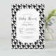 Invitation classique et intemporelle pour une fête de bébé avec un motif géométrique noir et blanc en damier. Styles de police et disposition personnalisables, avec un fond à motif simple et un design géométrique en damier épuré. Parfait pour les invitations de fête de bébé unisexe, les invitations de fête de bébé garçon, et les invitations de fête de bébé vintage.