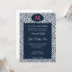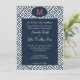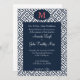 Joli faire-part de mariage de la clef grecque bleu marine et blanc. Customiser le monogramme au sommet de n'importe quelle couleur ainsi que la totalité du libellé. Cela impressionne vos invités !