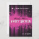 Un arrière - plan rose vif et froissé contre un noir riche donne à cette invitation Sweet 16 l'apparence d'une discothèque ou d'un prospectus d'évènement. Parfait pour les ados et leurs amis qui aiment la vie nocturne et pour passer du bon temps ! Un message principal sur le parti imprime en haut au-dessus de la masse magenta grungy brillante décalant leur nom et les mots "Sweet sixteen" rendu dans un style de type orné. L'image est inversée à l'arrière de l'invitation pour afficher les détails de la partie. Disponible en couleurs alternatives avec des produits correspondants.