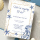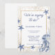 Announce your special day with this elegant Coastal Wedding Invitation. Part of the exclusive Nautical Chic Wedding Suite, this invitation features a striking navy blue and faux gold glitter theme. The upscale design showcases beautiful watercolor illustrations of starfish, sea coral, and a graceful jellyfish, perfect for setting the tone for a formal beach, yacht club, or seaside wedding. The modern, inviting template text ("We're saying 'I do!'") is ideal for contemporary couples. Highly optimized for Coastal and Nautical searches, this card is the essential first piece of your luxury destination wedding stationery. Customize all details and find matching menus, signs, and RSVP cards in the full collection!