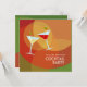 Modèle d'invitation de fête personnalisable avec illustration colorée de deux verres à cocktails et de leurs olives sur un arrière - plan coloré avec des cercles rétro. Personnalisez-le avec vos propres informations ou customisez-le davantage si vous devez modifier les champs de texte, les couleurs ou la taille de l'invitation.